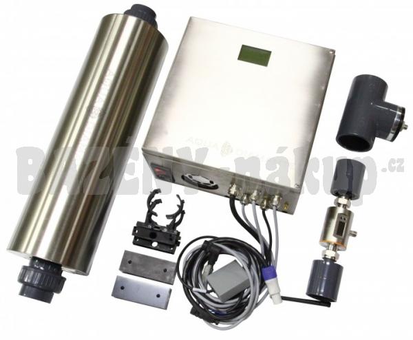 Pro aqua dezinfekce buňky (4 ks. Diamantové elektrody á 188 cm2) pro max. 100 m3 objem vody, 1 1/2 "konektor pro příslušenství, buňky - držáky, kontrolní skříňka (230 V / AC) s SMS funkcí, měřící přístroj indukčního toku a vodivosti.
