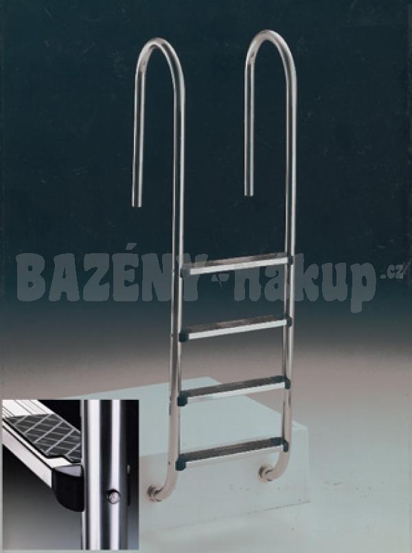 Schůdky se uchycují zabetonováním do plastového kotvení v určené vzdálenosti od kraje bazénu. Kotvení je kryto nerezovou krytkou. Madla i nášlapy jsou vyrobeny z leštěné nerez oceli AISI 304. Tento typ oceli však není vhodný při používání v bazénech, kde je voda upravená pomocí soli. Na to slouží žebříky vyrobeny z leštěné nerezové oceli AISI 316. Při objednávce do poznámek, uveďte prosím druh úpravy vody. K schůdkům lze dokoupit kotvení přírubové (není nutné zabetonování), nebo kotvení kloubové. Schůdky je možné z plastového kotvení jednoduše vyjmout povolením šroubů. Druhá strana schůdků, umístěná v bazénu, je pouze volně opřena o stěnu.